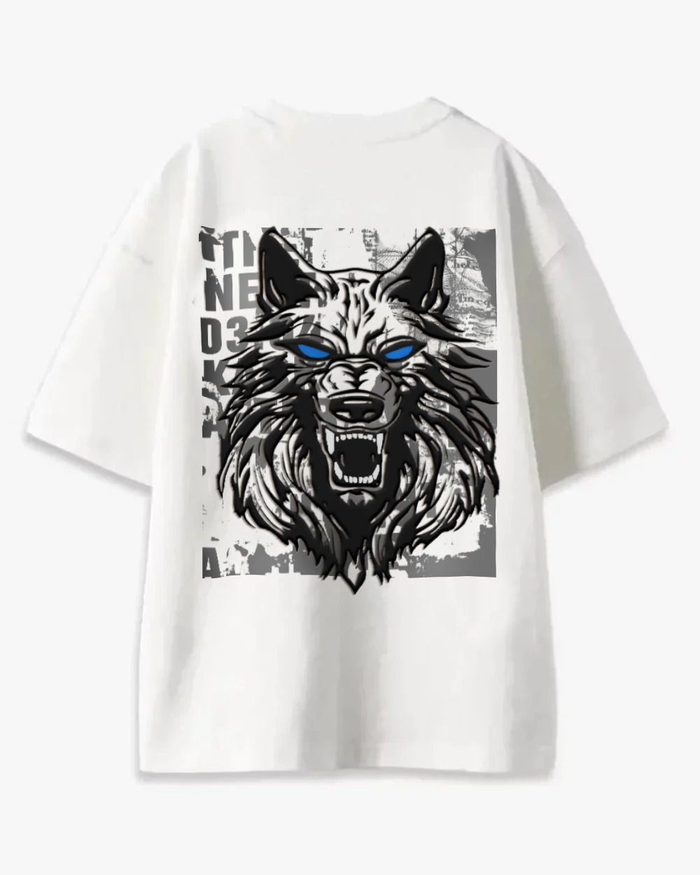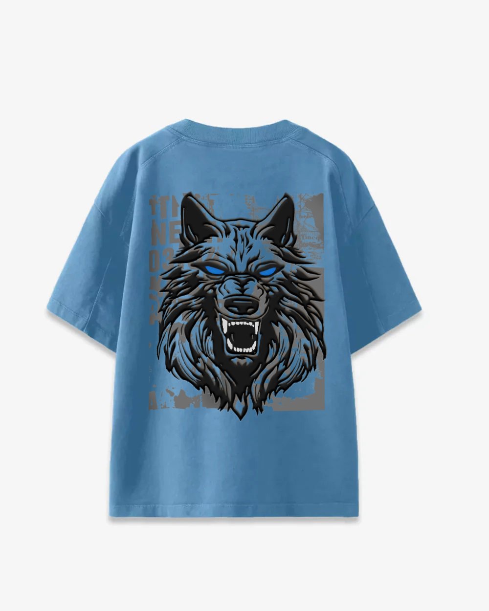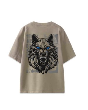 T shirt specifications- Crafted from 100% cotton French terry, in lovely COLUMBIA BLUE, BURLLYWOOD KHAAKI AND WHITE colour. This drop-shoulder baggy streetwear t-shirt with a substantial 240 gsm fabric weight. The breathable and comfortable fit fabric makes it perfect for all-day wear. The furious Wolf designed on back and elegant HD vinyl on front.