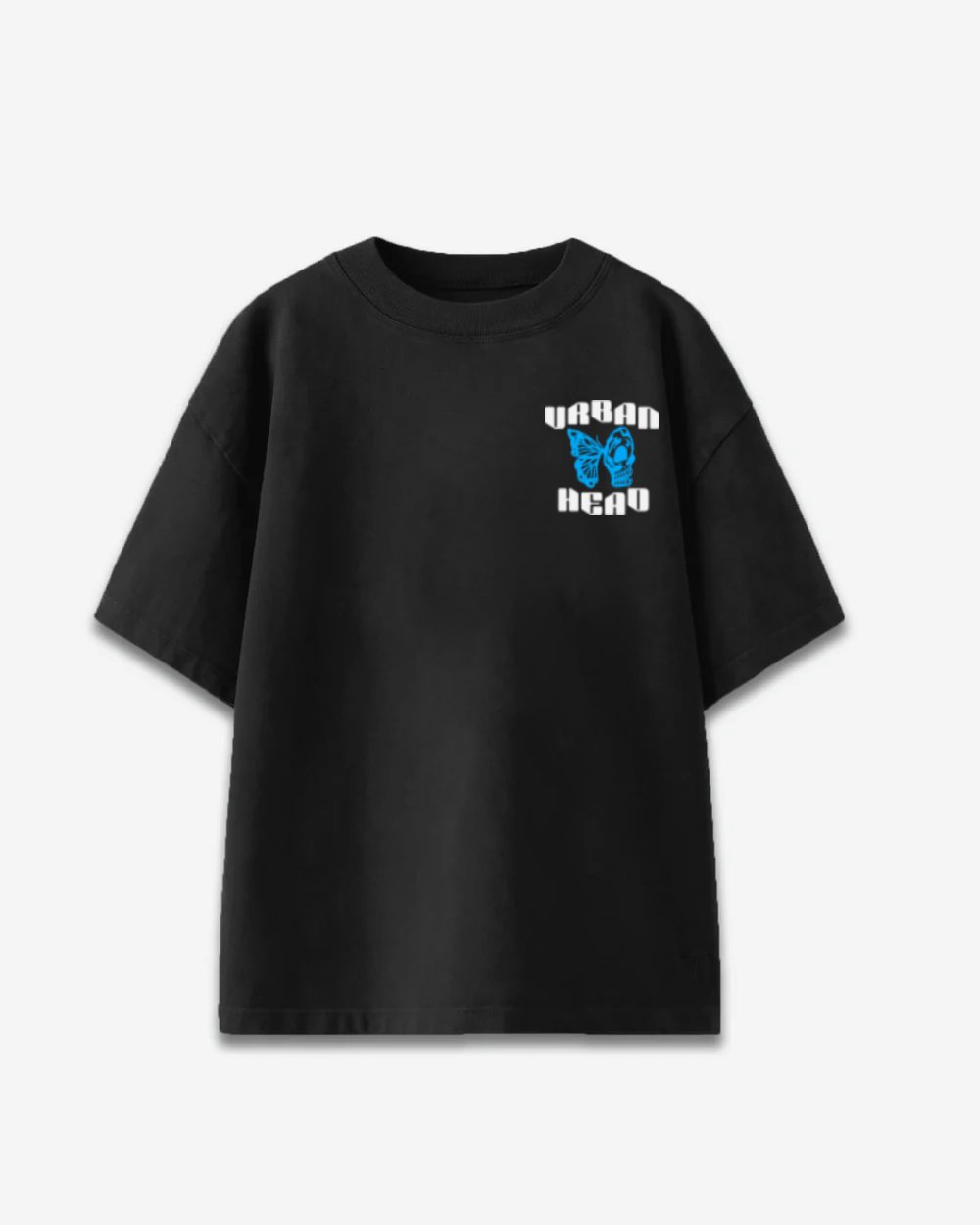 Embrace a unique blend of art and message with this t-shirt, designed specifically for those can feel life. Front is boasting URBANHEAD brand which holds significant aura of life where bold design combining elements of a skull and a butterfly. Design representing LIFE AND DEATH all together. It combines the skull, representing death and the finite nature of life, with the butterfly, a symbol of change, rebirth, and beauty.