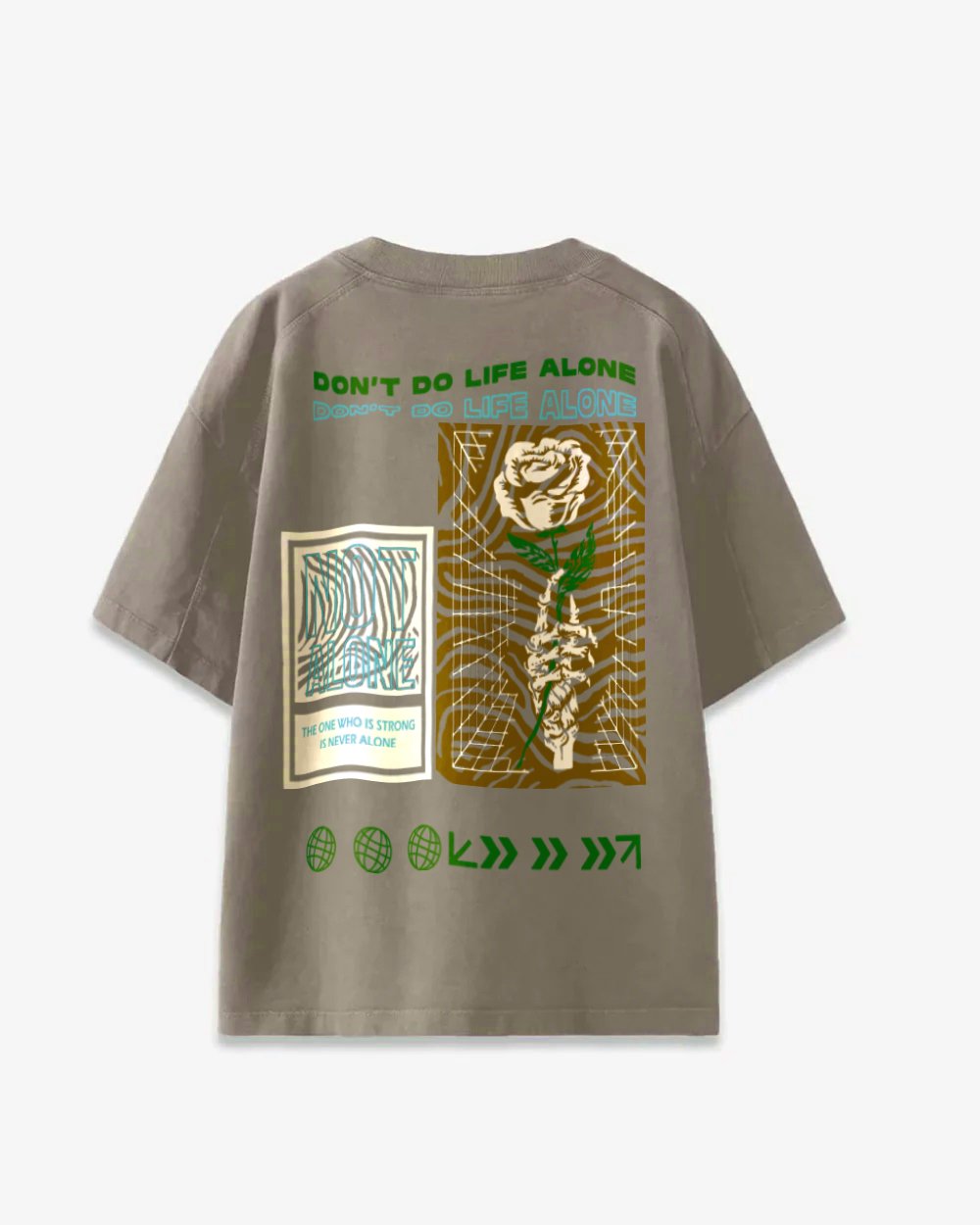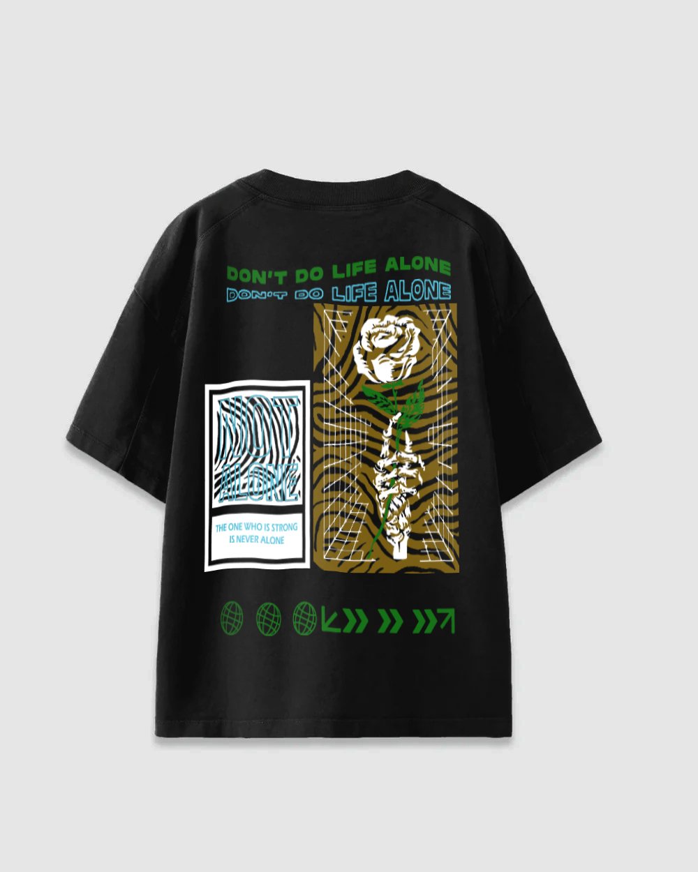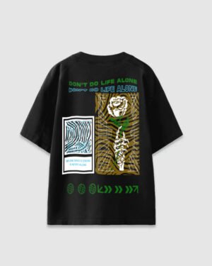 Its a distinctive drip, expressing gesture towards life to live it with love. Front shows much love with adorable Red Rose embossed patch. On the back there is skeleton hand, holding white rose. As a popular motif it often stands for love and death. It also represent the time period that you might have left with your loved ones. The bold letters – “Don’t do life alone”, exhibit a motive that Life is not what you alone make it. Its input of loved ones who touched your life and without someone or being alone, this very experience will diminish from one’s life. Get this drip full of love and rose packed affection. you will love to flaunt this to your loved ones.