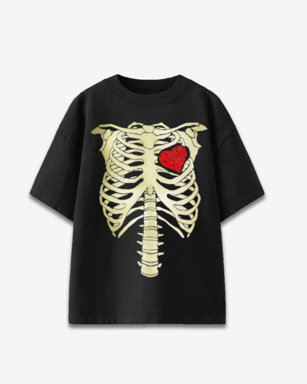 Presenting you, Crafted from 100% cotton French terry, designed with passion and having the smoothest artistic feeling. This drop-shoulder baggy streetwear t-shirt, in lovely jet black colour, boasts a substantial Skeleton design of a different kind with 240 gsm fabric weight, ensuring both comfort and durability.